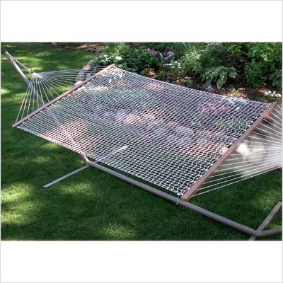 4997SP Stand Not Included This 2-point polyester net hammock is a huge double size hammock manufactured from quality, long lasting polyester knotless net with oak-look polybar spreader bars. - Fits model 4780GDP stand - 58'' wide X 82'' long About Algoma Net Company The Algoma Net Company has been in business for over 100 years. Having been in business in three different centuries, Algoma is proud to present you with their selection of the finest designs in hammocks and other outdoor lifestyle products. The Algoma family of all-American crafted products is recognized for its quality, styling and value. No matter where or when you want to relax, make it an Algoma product!